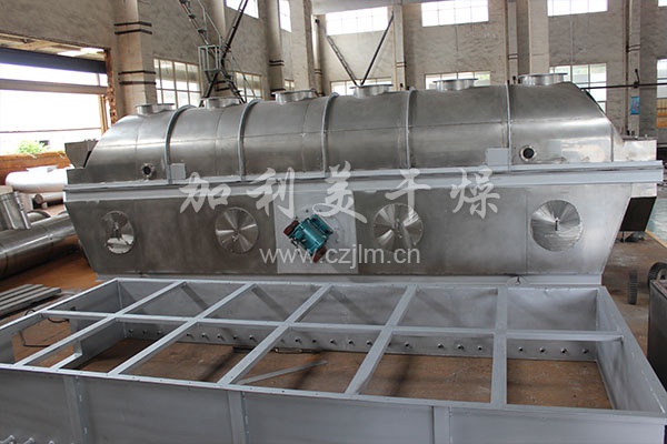 產品概述:物料自進料口進入機內,在振動力作用下,物料沿水平流化床拋擲,向前連續運動,熱風向上穿過流化床同濕物料換熱后,濕空氣經旋風分離器除塵后由排風口排出,干燥物料由排料口排出。