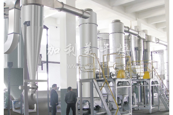 ● 干燥室裝有分級環及旋流片,物料細度和終水份可調。(如碳酸鈣終水份可調節器至≤0.1%)